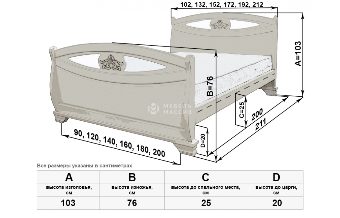 Кровать Эльза имеет две идентичные спинки, отличающиеся аккуратной изогнутостью, декоративными углублениями и цветочными узорами. Изделие, которое можно купить по специальной цене в нашем интернет-магазине, оснащено устойчивыми ножками, защищающими напольное покрытие от повреждений. Осуществляется доставка на дом по Ессентукам и Ставропольскому краю .| Размер | Цена | |