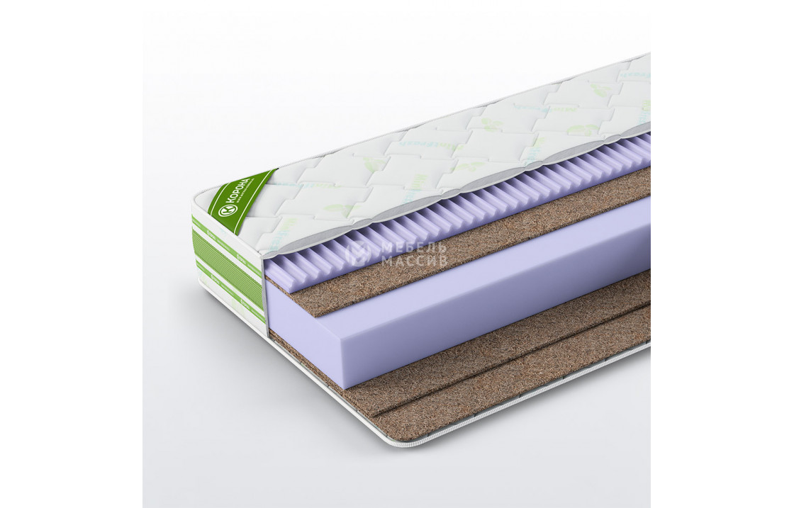 - 1 ст. - кокосовая койра 20 мм ? Кокос - переплетенные волокна кокосового ореха, растительного происхождения. Исключительные свойства кокоса в прочности, упругости и гигиеничности. Материал придает жесткости матрасу. Обладает отличной вентилируемостью, устойчив к любой влажности и перепадам температуры, гипоаллергенный и долговечный.