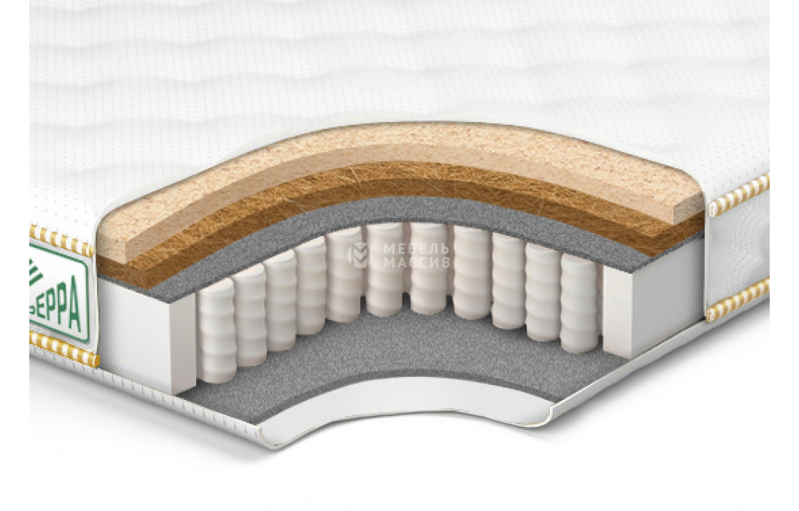 - Кокос 3 см ? Кокос - переплетенные волокна кокосового ореха, растительного происхождения. Исключительные свойства кокоса в прочности, упругости и гигиеничности. Материал придает жесткости матрасу. Обладает отличной вентилируемостью, устойчив к любой влажности и перепадам температуры, гипоаллергенный и долговечный.